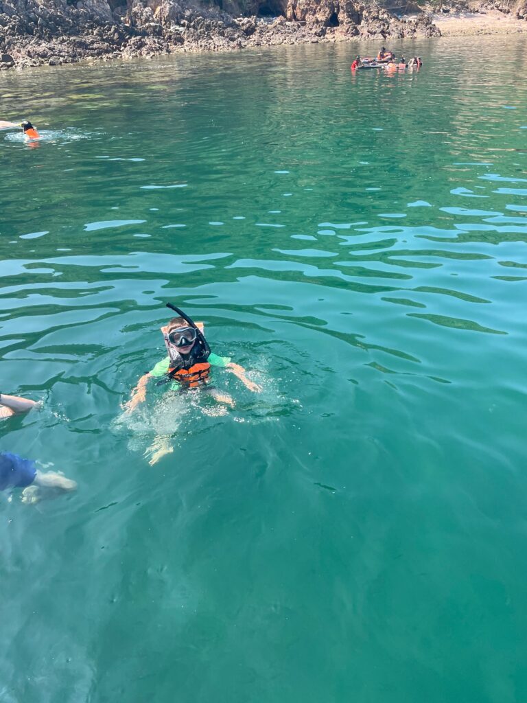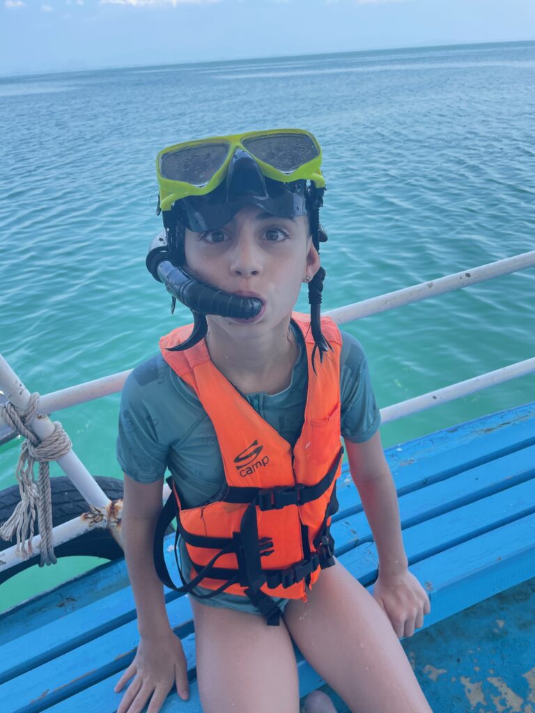 Quand je suis allée à Ban krut, j’ai pu faire de la plongée en apnée pour admirer les récifs de coraux. Nous avons pris un bateau privé car mon oncle en avait déjà fait sur ce bateau. En passant, nous allons faire de la plongée avec lui. Nous sommes huit dans le petit bateau. Heureusement, nous rentrons tous.